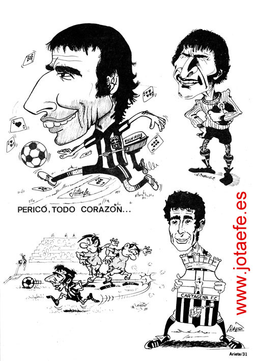 En aquellas fechas el periodista Pacovy, que editaba la revista local “Ariete”, publicó un número extra dedicado a ese pequeño gigante del fútbol cartagenero que es Perico Arango, hoy todavía defendiendo los colores blanquinegros del Efesé, aunque ya no como lateral derecho.