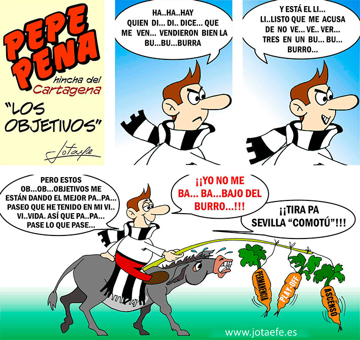 Pepe Pena, hincha del Cartagena, no era un héroe, sino un anti-héroe (siendo seguidor del Efesé, es lo más práctico). El apellido ya daba una pista. Y la repetición de tanta “pe” nos ponía en antecedentes de una de sus características: era tartamudo, o tartajoso, como se dice por aquí.