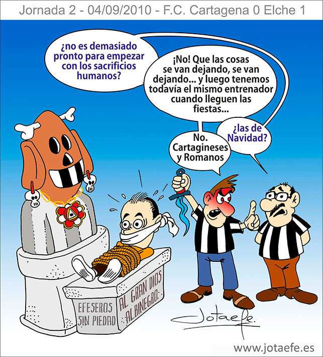 Juan Ignacio Martínez, entrenador del FC Cartagena, amado por unos y detestado por otros, como ocurre casi siempre, estaba en el punto de mira de una parte de la afición y cuando se perdió en casa contra el Elche, ya comenzaron a pedir sangre.