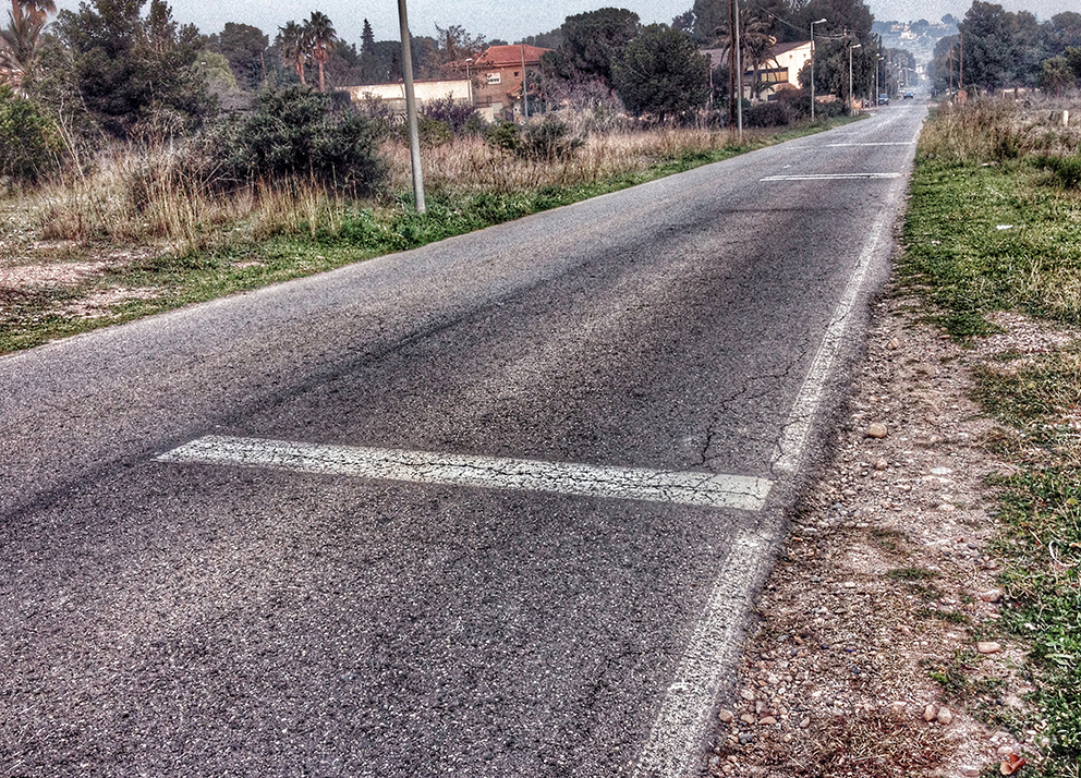 Esta «acera» de la foto es, concretamente, del Paseo del Canal, una de las calles más largas del pueblo. Una calle larga y recta donde algunos conductores hacen pruebas para ver qué velocidad alcanza su bólido, y ya quisiera Fernando Alonso conseguir la media de algunos que pasan por allí. Al no haber ni radares, ni vigilancia, ni pasos sobreelevados, ni ná de ná, aquello es el Far West de Cartagena.