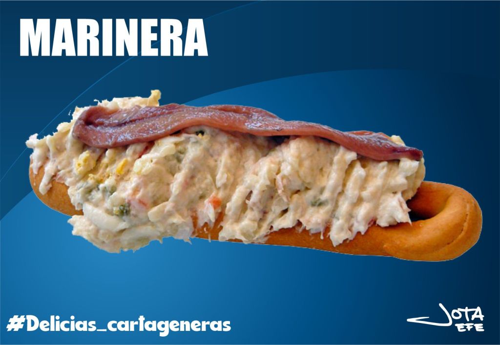 MARINERA: Tapa consistente en una rosquilla con ensaladilla rusa y una anchoa sobre ella.