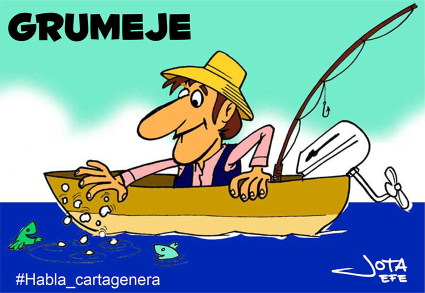 GRUMEJE: Cebo (CARNÁ) echado al agua para atraer la pesca. // Reunión multitudinaria y bulliciosa.
