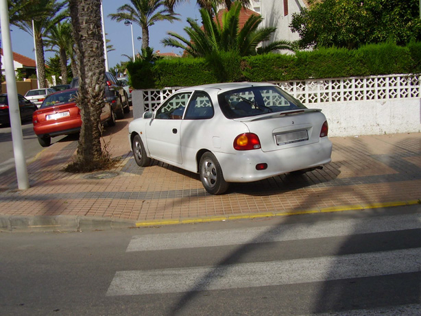 El diseño urbanístico también echa una mano y se encuentra uno con palmeras que ocupan TODO el ancho de la acera. Los peatones que tenemos movilidad disminuida por alguna razón, con cochecitos de bebé, vamos en silla de ruedas, llevamos carrito de la compra y otras circunstancias varias, entre esos árboles que germinan en las aceras y esos coches aparcados por los usuarios de calzones Meyba, no nos queda otra opción que tirarnos a la calzada como espontáneos aunque seamos antitaurinos y torear a los coches con un par.