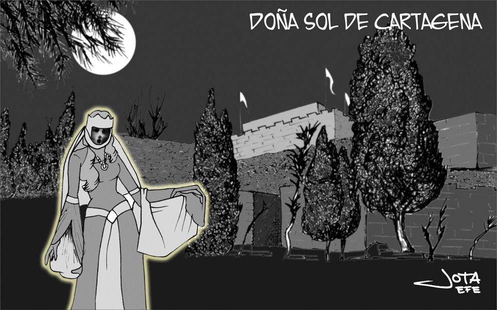 Pero me estoy desviando. A lo que iba. En la principal de las cinco colinas de Cartagena se alza el castillo de la Concepción, aunque ya se debe parecer poco al original Palacio de Asdrúbal por la cantidad de transformaciones que ha sufrido desde entonces. Esta historia arranca de cuando era un castillo o fortaleza en época medieval. La protagonista principal fue una dama llamada Doña Sol, hija de una familia noble y enamorada de un joven, Don Mendo de Acevedo, que no estaba a su altura de linaje, por lo que sus padres no accedieron a su boda con él.
