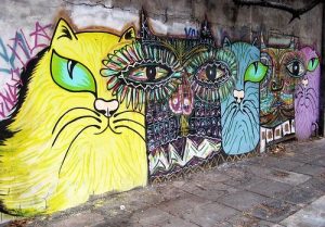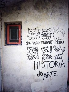 ¿Has dónde vamos a llegar? ¿Vamos a consentir que los gatos del Foro Romano de Cartagena vuelvan a su hogar, como pretenden unos locos? Por si alguien los echa de menos, pintamos algunos por las paredes, pequeños toques artísticos, que no cazan ratas, ni culebras, ni cucarachas, ni nada de nada, pero tampoco escarban las macetas ni se cruzan en el camino de los honrados votantes.