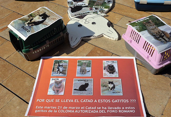 Actualmente, cuando en una comunidad de vecinos ronda algún gato, siempre habrá un justo defensor del bienestar de todos que llevará el problema a la asamblea vecinal para que se tomen las medidas oportunas y el malvado bicho deje de escarbar en las macetas. O la cosa puede adquirir valores épicos, como en el caso de los gatos del Foro Romano de Cartagena, donde las gestiones bien hechas por algún vecino vigilante han logrado que los seis integrantes de la colonia hayan sido trasladados a la perrera municipal.