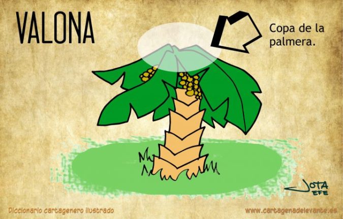 Lo que ya no está tan claro o, mejor dicho, nada claro, es por qué en el habla de Cartagena se llama así a la copa o parte alta de la palmera.