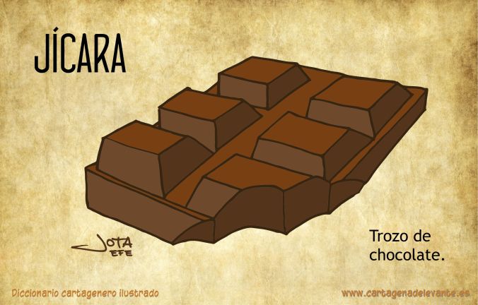 Una jícara, vaya por delante, es una vasija pequeña, generalmente de loza, según nos explica la RAE.  Y, además, suele emplearse para tomar chocolate, en estado líquido, claro, habría que añadir.