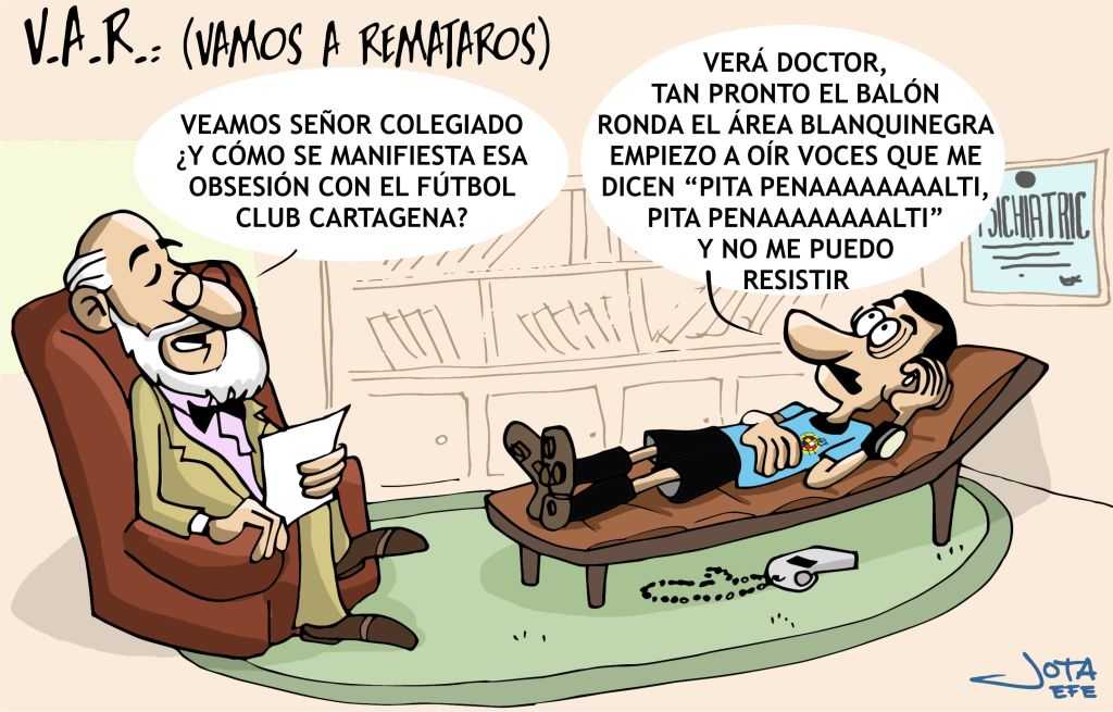 - «¿Que no hay cojones a pitarle otro penalti al Cartagena? Sujétame el cubata…»