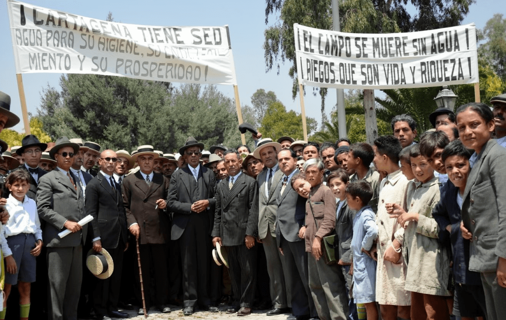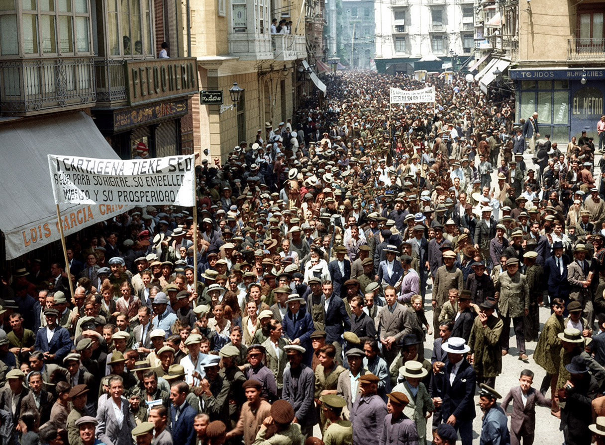 Manifestación histórica en Cartagena reclamando agua y recursos para el campo. En plena República. Y decían «Los rojos no llevan sombrero». Pues se les infiltraron todos los fachas por lo que se ve.