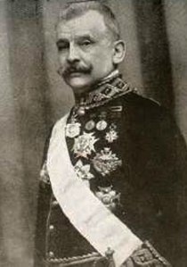 Miguel Cabanellas Ferrer (1872-1938) General del Ejército, participa en la reconquista del Rif en 1921, Gobernador Militar de Menorca, Jefe del Ejército de Marruecos, Director General de la Guardia Civil en 1932. Era republicano y masón. Apoyó el golpe de estado de Franco. Fue nombrado, como general de división más antiguo, Presidente de la Junta de Defensa del bando Nacional en la Guerra Civil el 24 de Julio de 1936. Dos semanas después, firmó el decreto por el que la bandera dejaba de ser la tricolor con la franja morada de la República y volvía a ser la bicolor aprobada por Carlos III.