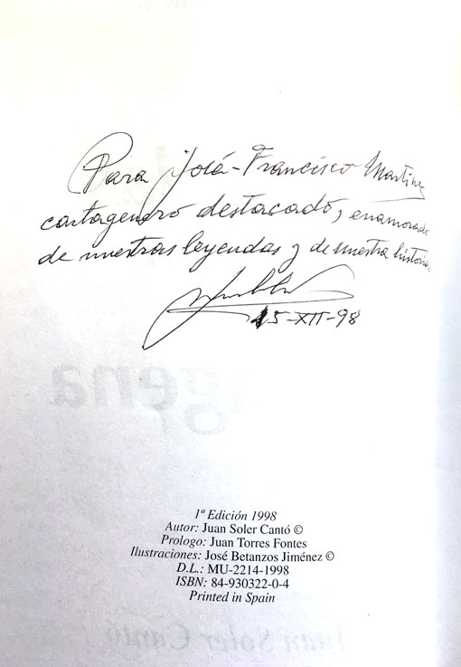 Hola!! He leído que el fraile Fray Leandro Soler es el autor del libro «Cartagena Ilustrada» serías tan amable de informarme donde podría adquirirlo, soy cartagenera de pura cepa, enamorada de mi querida Cartagena, gracias.