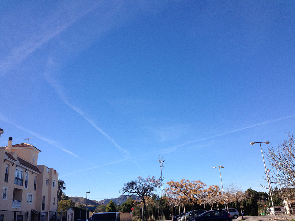 Lo de las chemtrails o estelas químicas no sé si será otro delirio más de los amantes de las teorías de la conspiración o es verdad que nos están fumigando como a cucarachas, vaya usted a saber para qué. Yo me inclino más por lo último por aquello del «piensa mal y acertarás».